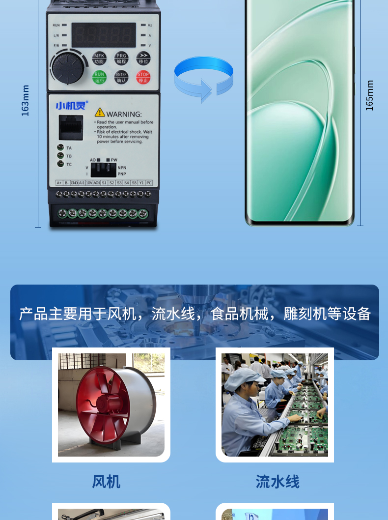 產品主要用于風機,流水線,食品機械,雕刻機等設備