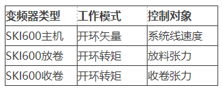 張力控制單元:采用三科SKI90張力變頻器(1臺(tái)放卷+2臺(tái)收卷)